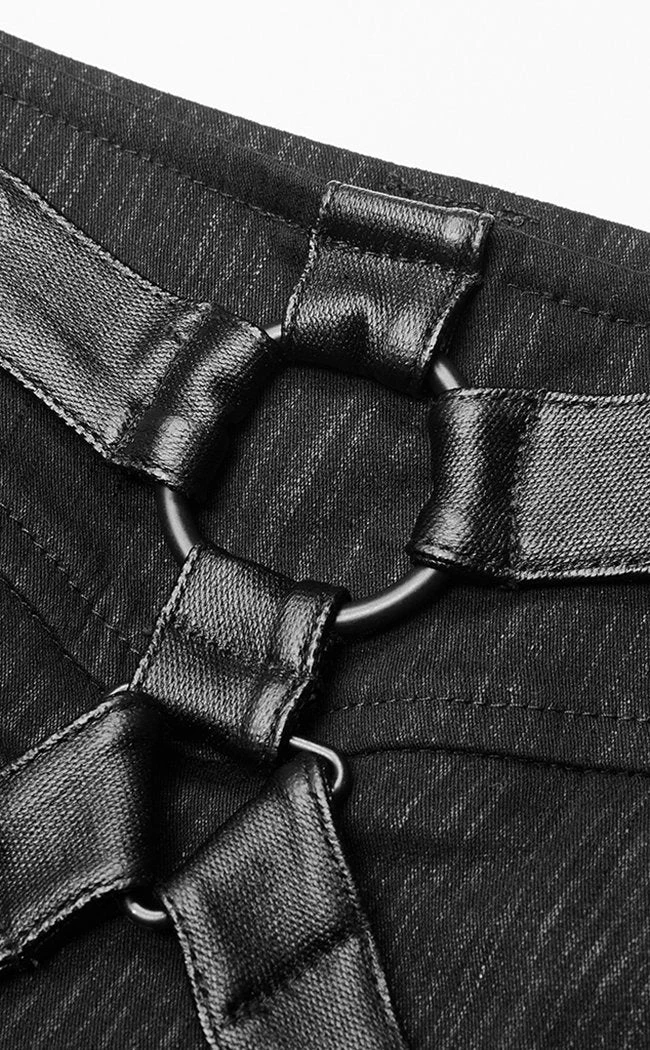 Look the corpgoth part in the Missing Virtue Harness skirt! Black stretch fabric hugs your hips and waist while a zip creates a cheeky cutout at the hem. A faux leather harness forms a belt and sits over the hips, fully adjustable.
