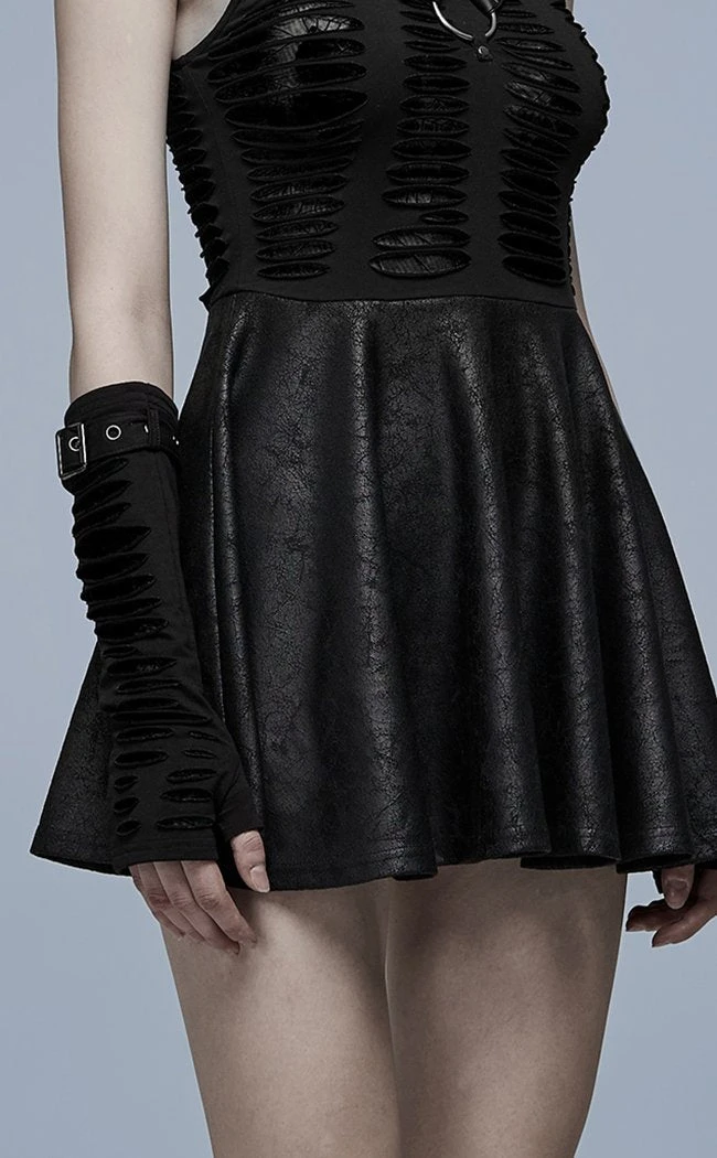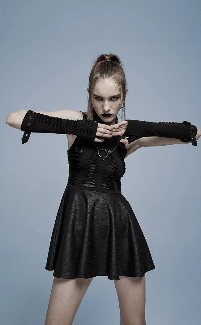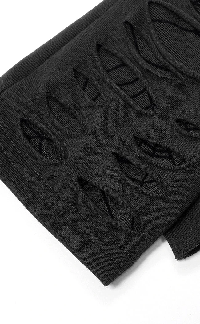 Accessorise with the badass Widow’s Web Armwarmers! Slashed black fabric sits over a layer of mesh with a spiderweb pattern, securing over the arms with an adjustable buckle.