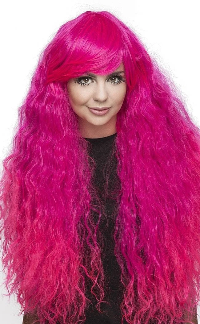 Amazing long, thick, wavy and wild style wig in hot pink intensity (a magenta and atomic pink mix). These wigs are from the Prima Donna collection and have a lot of dramatic flair.