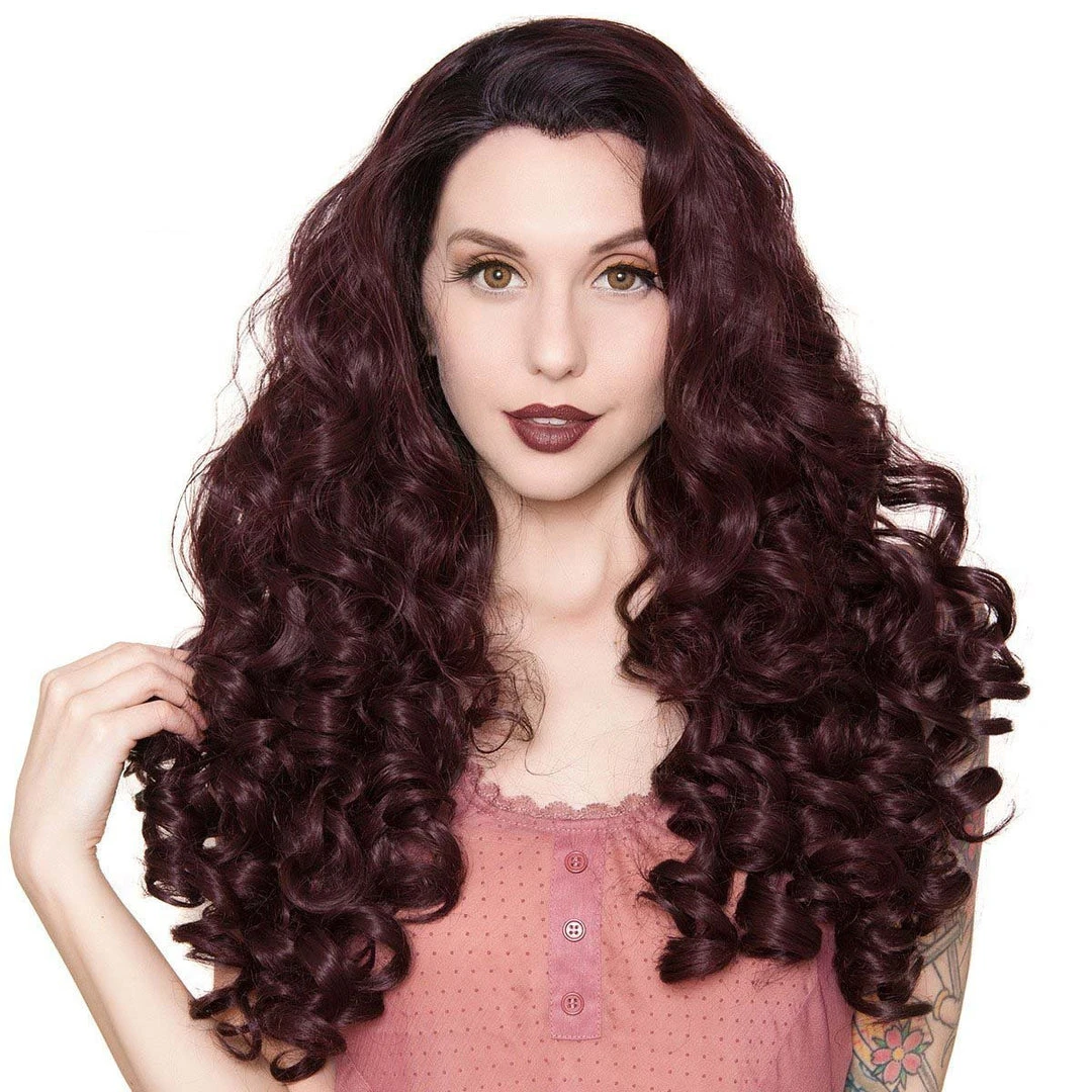 Gorgeous top quality lace front wig. Dark roots and an amazing black rose colour head of strong vibrant curls. Perfect for changing your look or completing your cosplay.