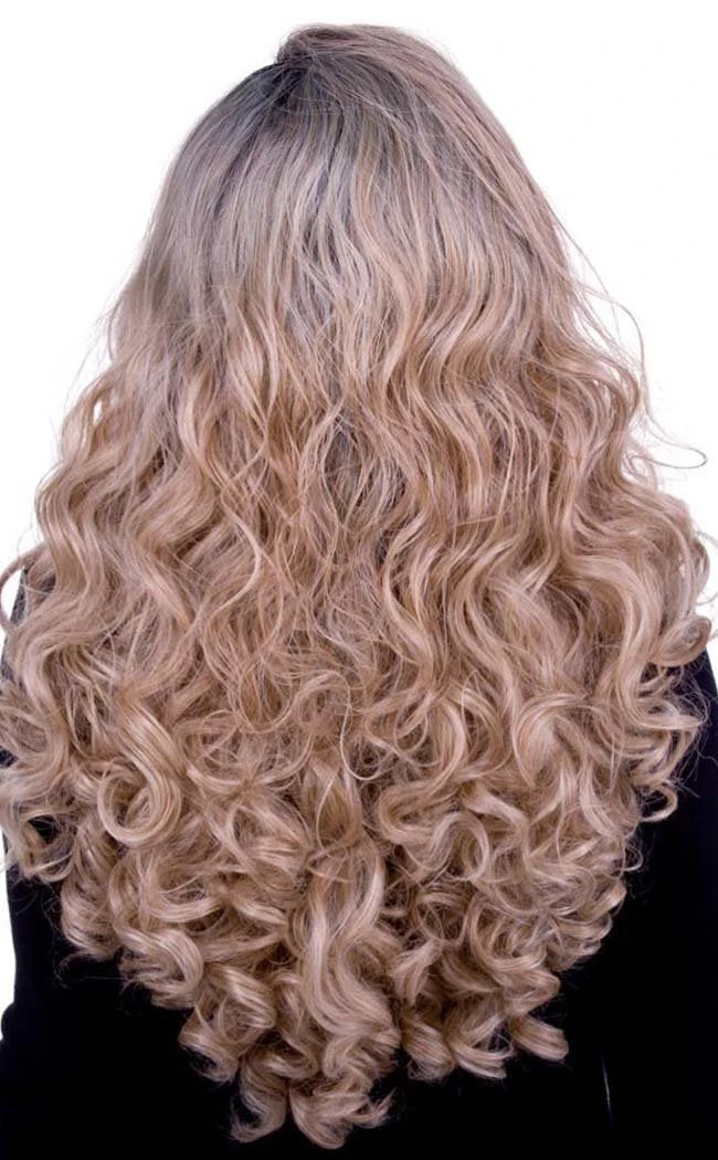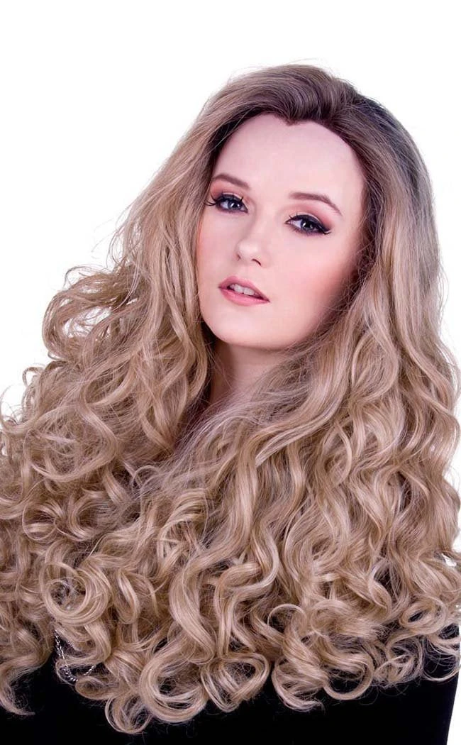 Gorgeous top quality lace front wig. Featuring dark roots and flowing thick curls in an amazing light medium blonde mix colour. Perfect for changing your look or completing your cosplay.