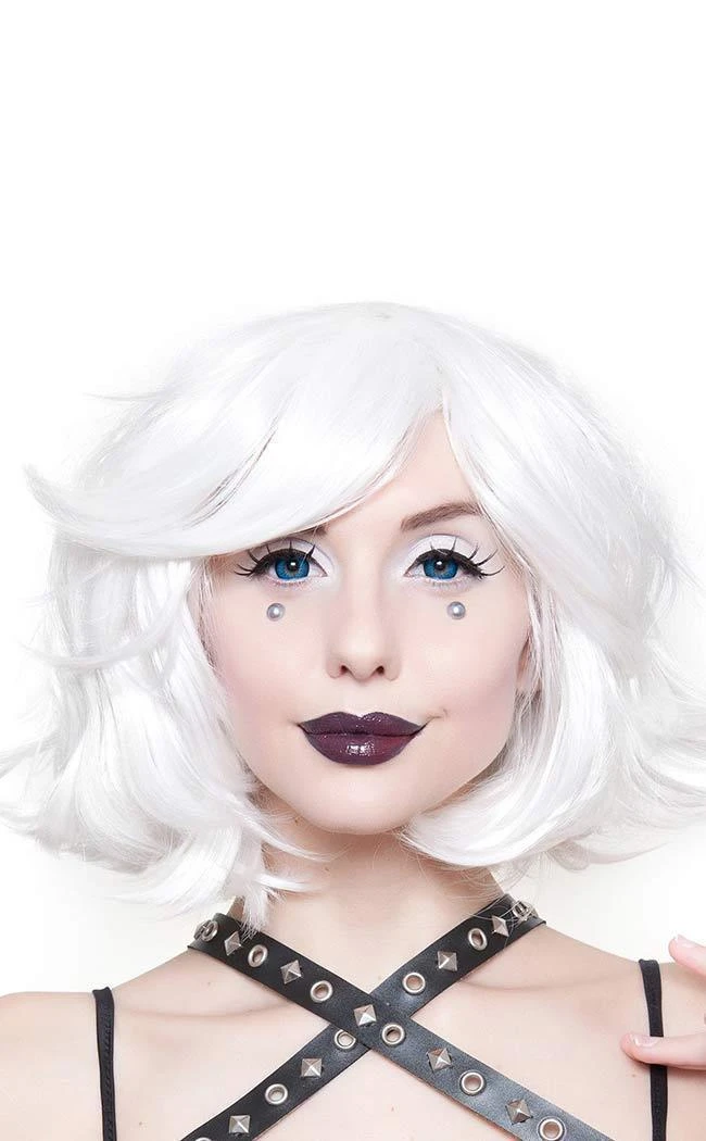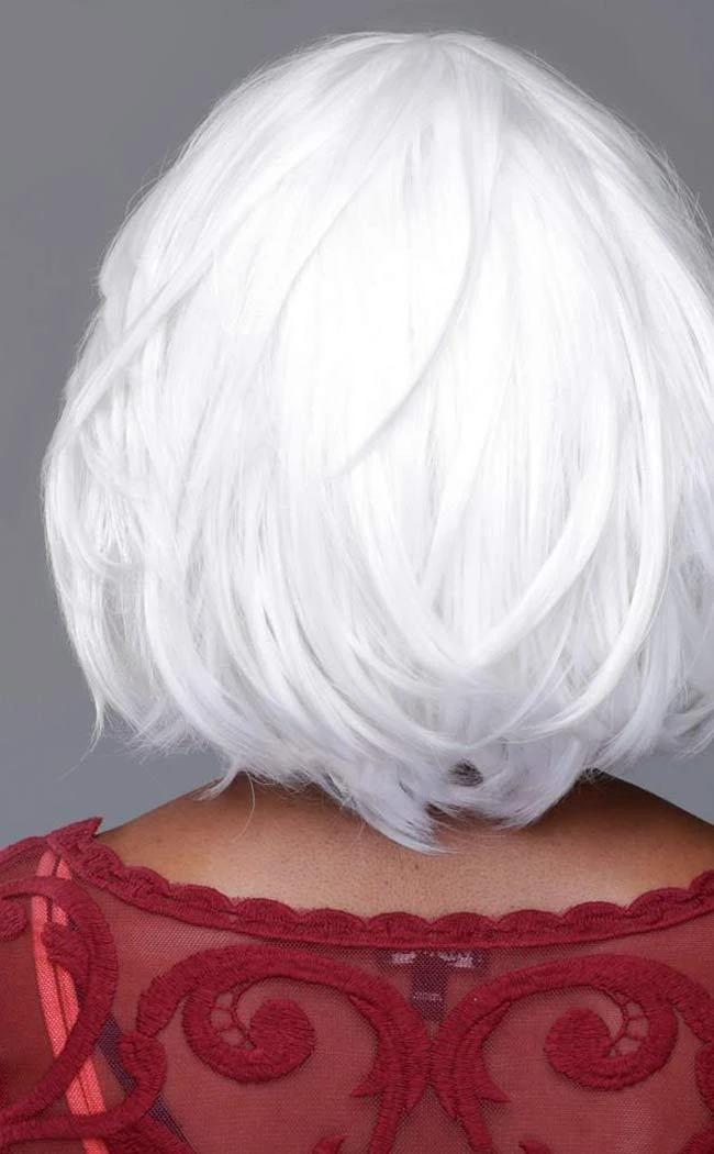 Stunning pure white short wig with super flirty layers. Can be styled messy or straightened into a tidy bob.