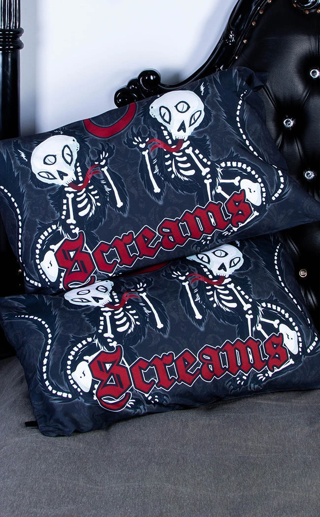 Sleep as deep as the dead on the Sweet Screams Pillow Slips! These cute pillow slips feature two skeletal kitties and the words “Sweet” on one side and “Screams” on the other.Â