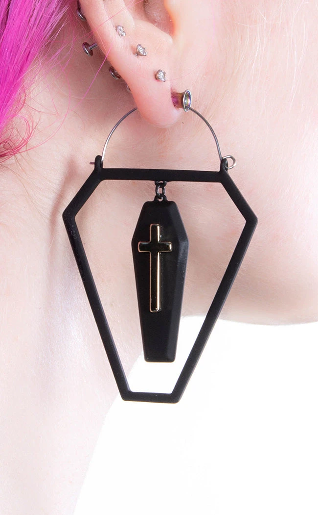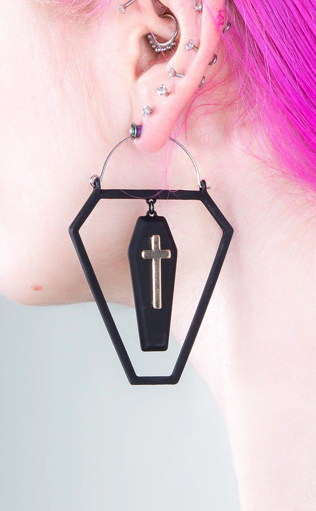 Cross in a Coffin Plug Hoops | Earrings