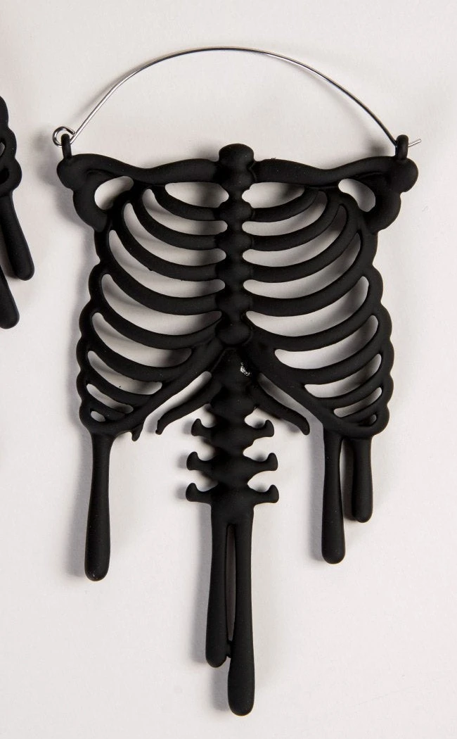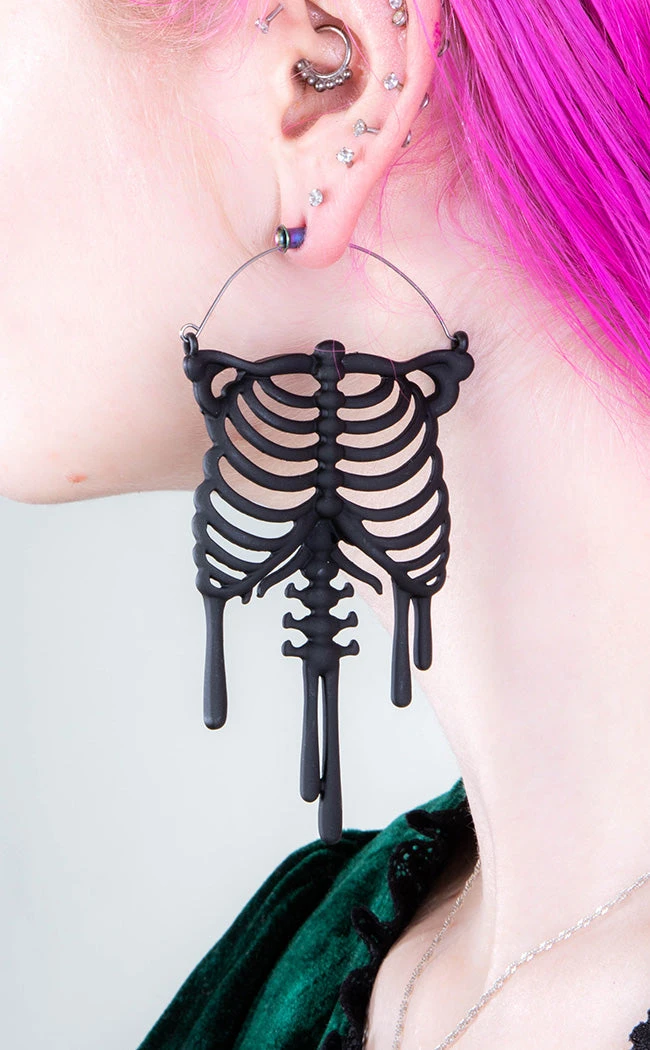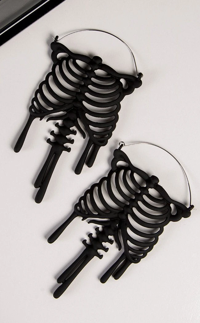 These badass earrings are a pair of matte black ribcages dripping with shadows and oozing morbid style.