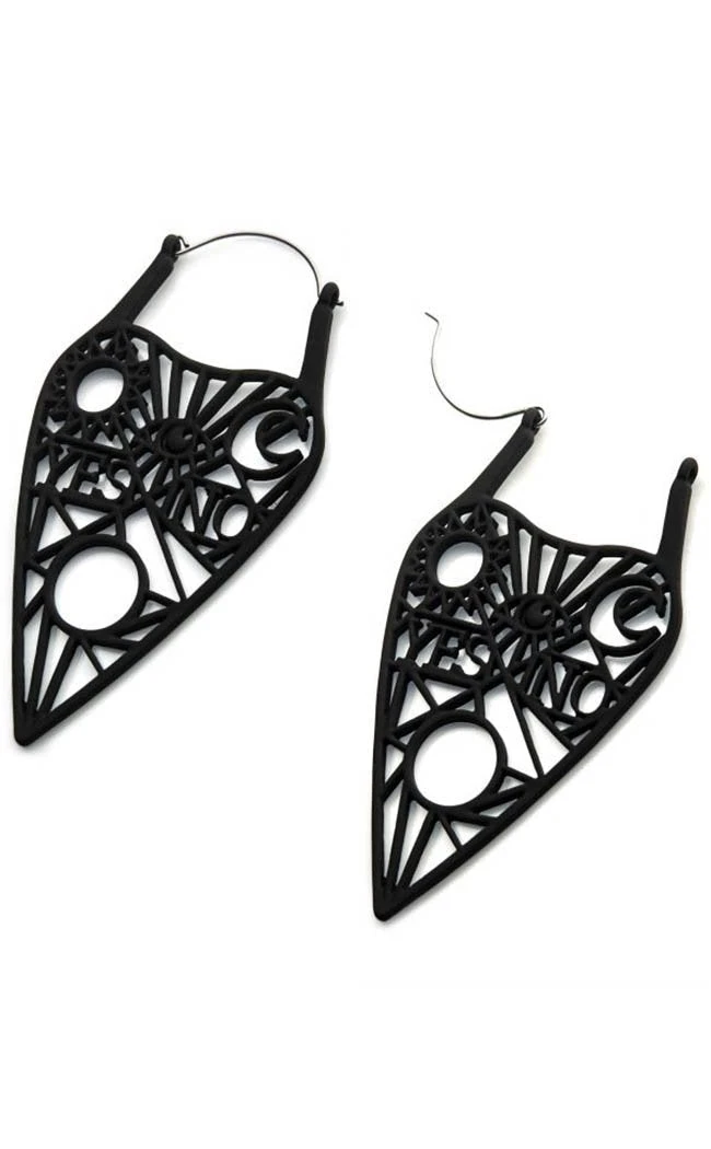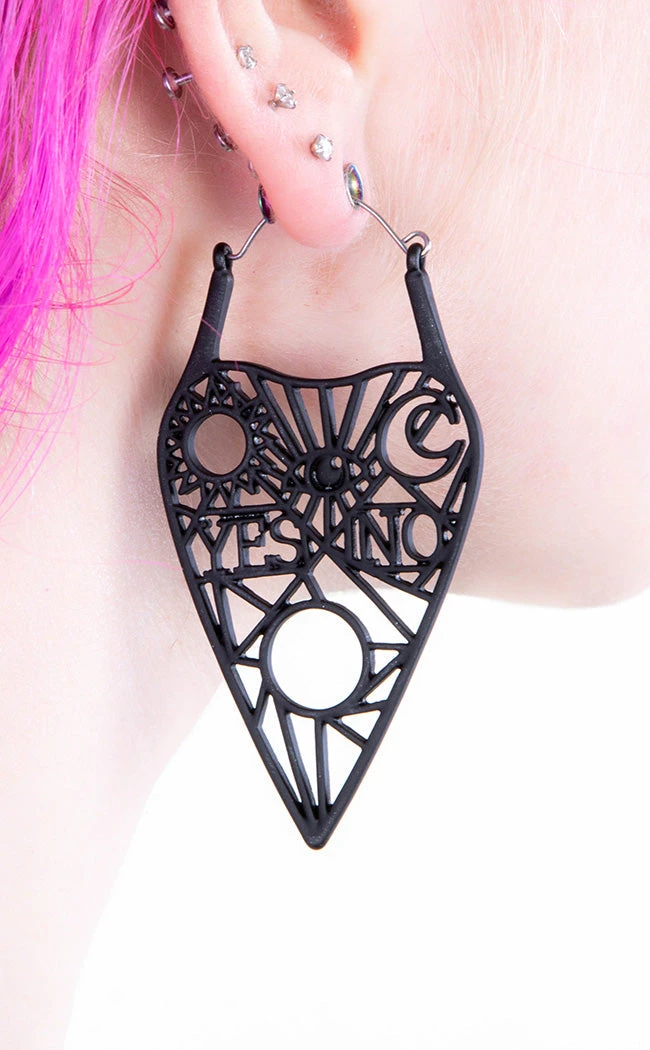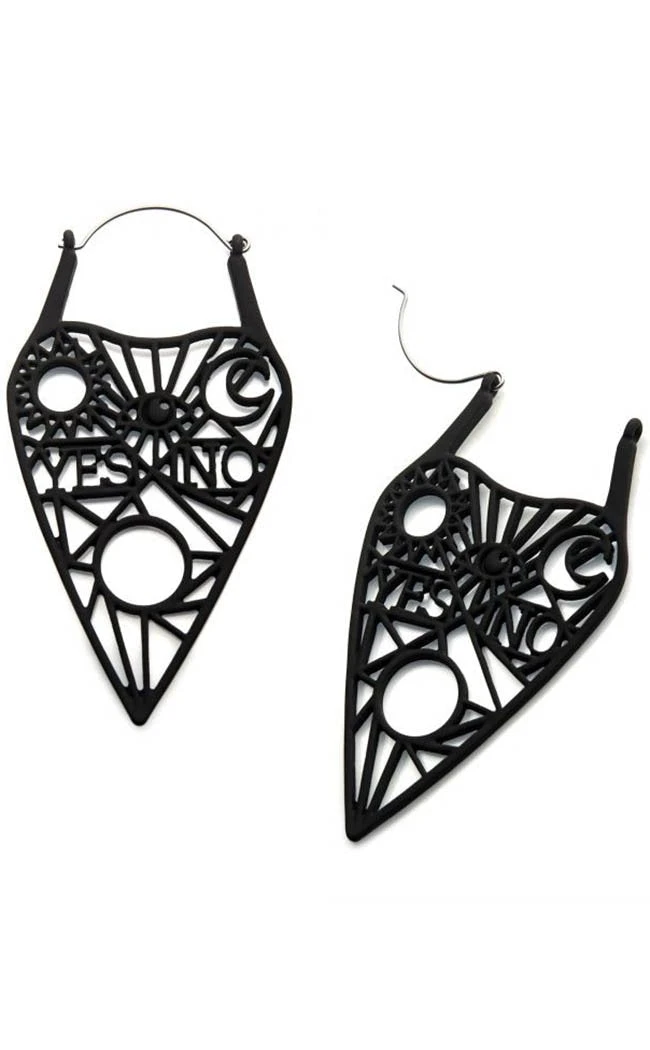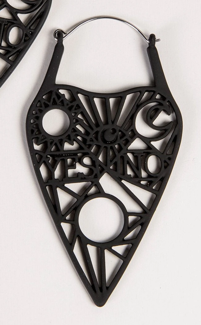 These gorgeous planchettes are an openwork design, stating “yes” and “no” and cast in light black silicone. The hools are surgical steel so super safe for your ears.