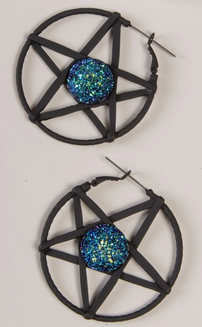 Pentagram with Blue Druzy Plug Hoops | Earrings