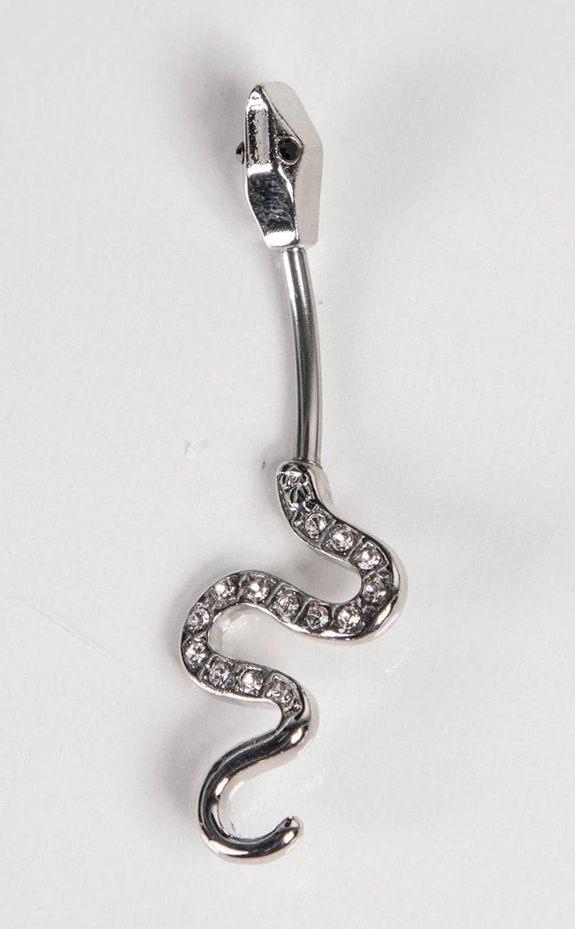Add some serpentine glitter to your navel! This in-n-out piercing is shaped after a twisting snake with glittering clear crystals for scales.