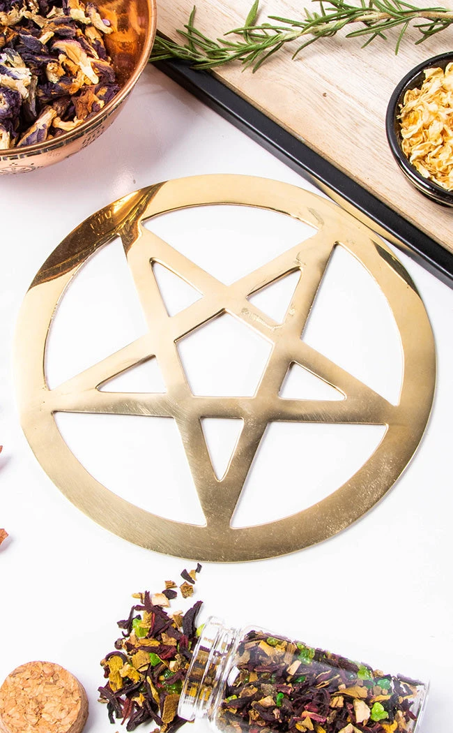 This golden pentacle is the perfect altar accessory! Use it as a protective stand for your cauldron or burner or simply hang it above your altar.