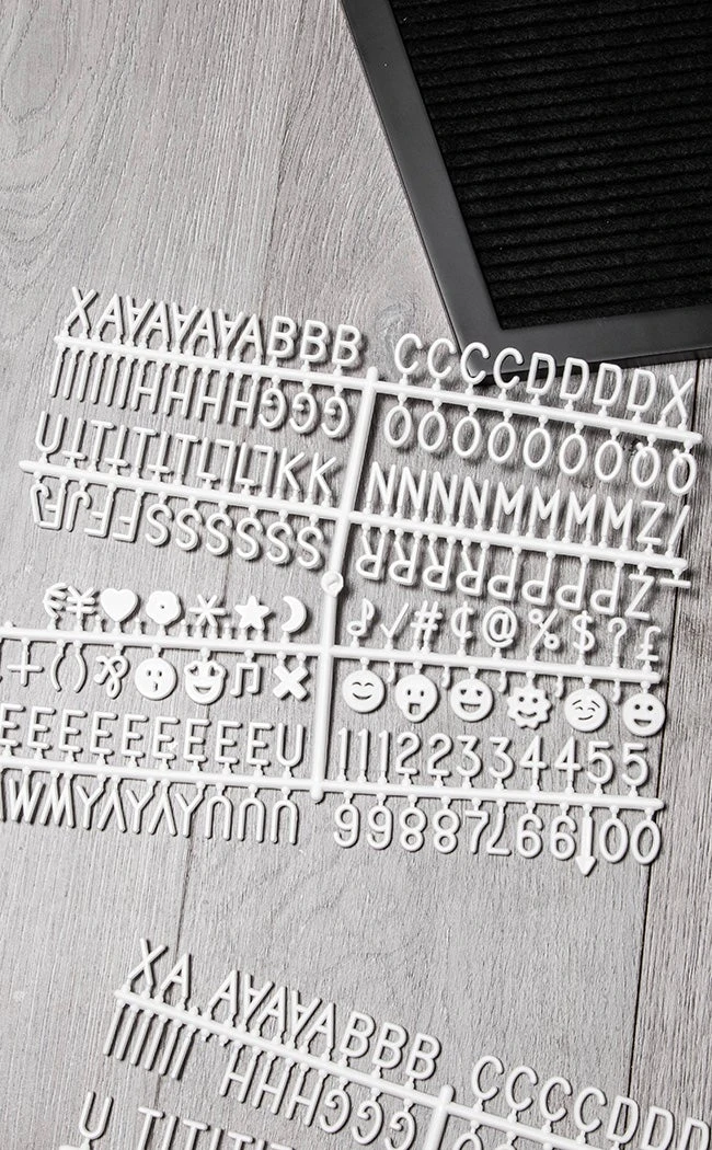 Includes more than 500 white letters and numbers, symbols, and emojis plus storage pouch for excess letters.