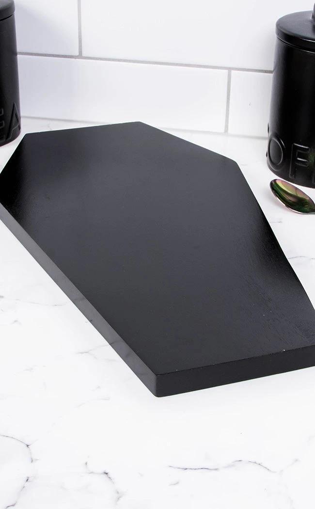 Who needs boring kitchenware when you can serve up a dish from beyond the grave? The Mortis Coffin Cutting Boards are made with sturdy mango wood with a sleek black food-safe finish.