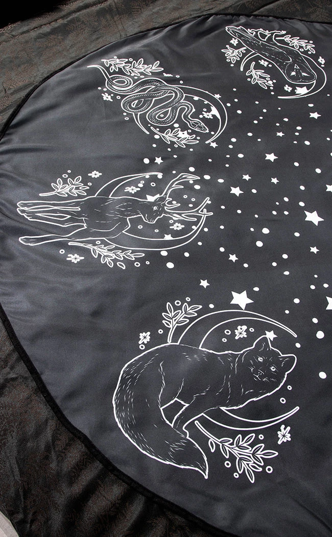 Make your home a magickal menagerie with the Les Familiers Round Tablecloth! Featuring beautiful artwork of witchy animals surrounded by nature, the monochrome colour scheme will look at home in any dining room.