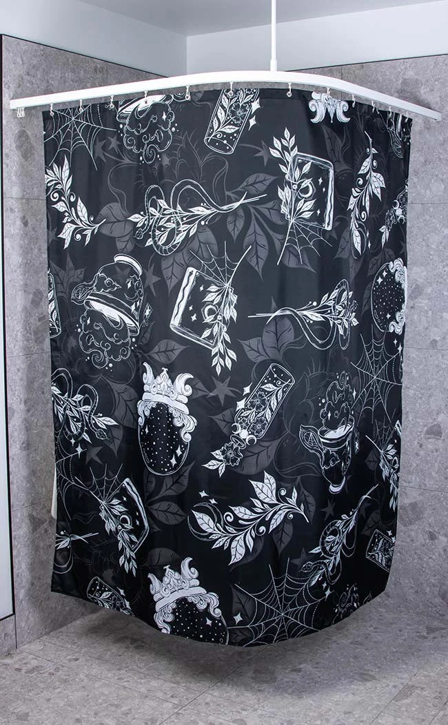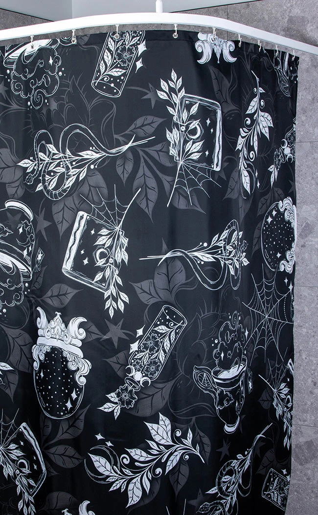 Bless your bathroom with the bounty of nature! The Wild Witch Shower Curtain hums with wild energy, made with soft, waterproof fabric printed with witchy symbols set against a background of overgrown leaves and ivy.