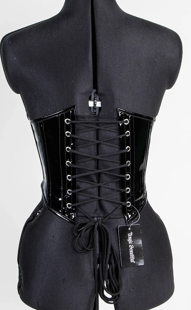 Make ’em weak at the knees with the Vertigo PVC Corset! Sleek, glossy PVC forms this overbust corset, which ends at the natural waist with a sexy V waistline. Steel boning provides structure and support for all-day wear and tightlacing for an edgy silhouette. The rear secures with an adjustable lace-up that comes with an optional modesty panel.