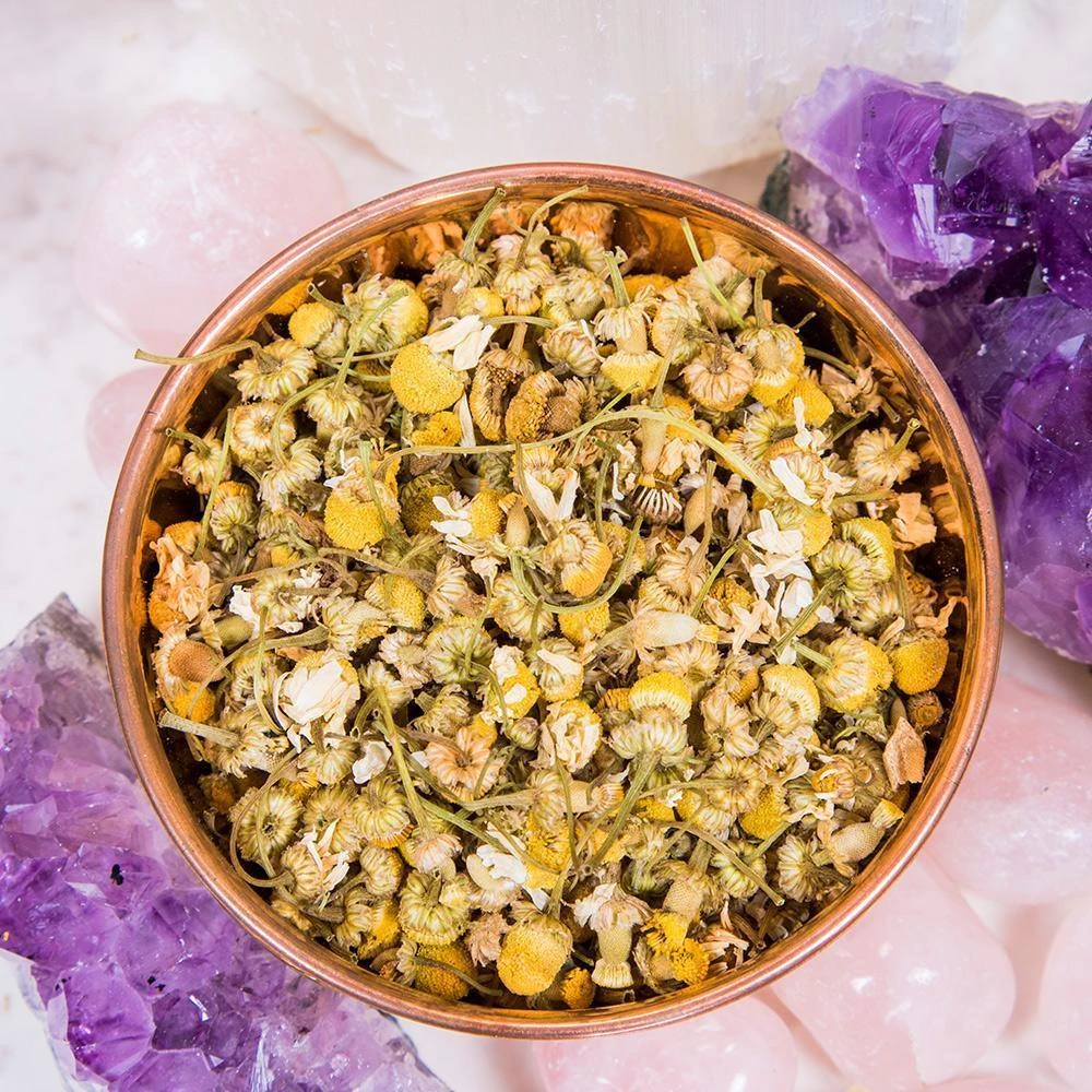 Chamomile, associated with the sun, and Leo and the element of water. It is associated with various Sun Gods, including Ra, Cernunnos, Lugh and others.