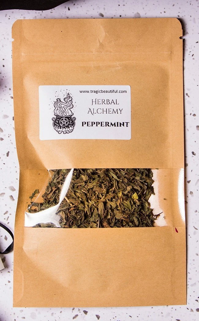 You will receive a pouch of peppermint as pictured suitable for magical use. This is a lightweight herb so it is a 12cm x 18cm pouch stuffed full.